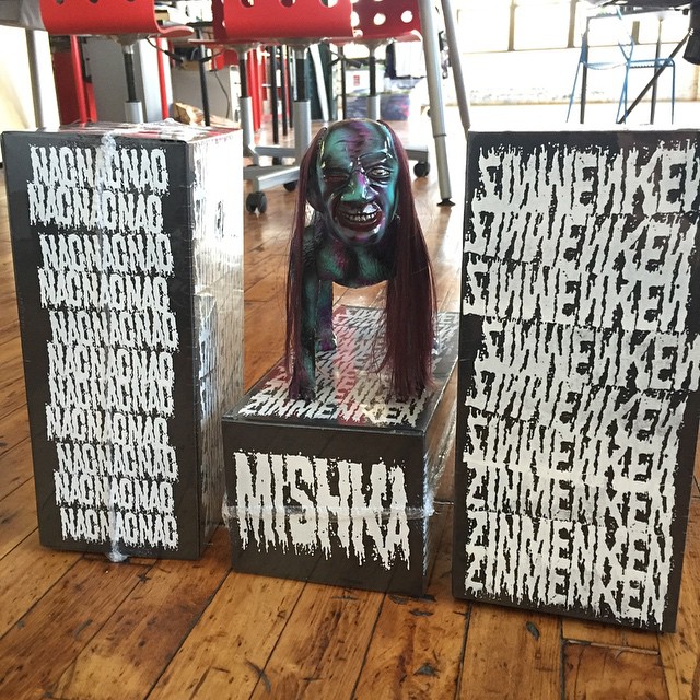 Greg Rivera over at Mishka has just revealed that they’ve teamed up with NagNagNag‘s Shigeru and KK for a Designer Con 2014 exclusive of the elusive Zinmenken sofubi! Based on a Japanese urban legend that talks of a human-faced dog, the super-creepy figure was sculpted and produced by Jyarinco’s owner KK, this time around coming with stunning neon/metallic sprays and hand threaded hair from Shigeru. Limited to an edition of 3 – each said to be completely unique – the figures will be up for grabs at the Mishka booth (#208) from November 8th – 9th for an undisclosed sum…