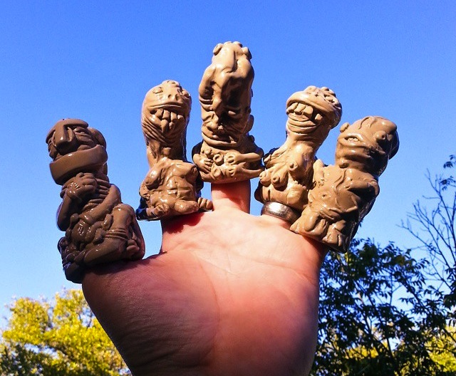Having teased the little guys on Instagram over the past couple of months, Krotpong is proud to finally unveil his upcoming series of sofubi minis in full… introducing The Homunculords! Standing around 2.5″-3″ each, the set of 5 finger puppet-style figures all have their own unique – albeit stomach churning – feel, taking elements from right across pop culture, horror and neo-kaiju to devastating effect. Currently undergoing full soft vinyl production over in Japan courtesy of Velocitron, we’re told to expect an initial run in either flesh and/or GID in the not too distant future. Keep track of the Krotpong Instagram feed here for more details on the project soon…