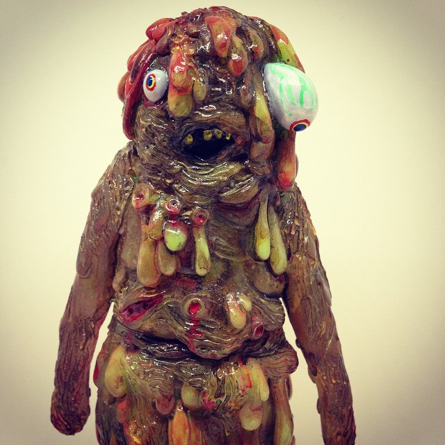 The Muckster (top)// Saving the best for last, Blurble proudly presents his latest resin figure, the Muckster! A collaboration with Selfishlittle, the sludgy monstrosity stands at around 6″ of hand cast resin. Available in a number of different layered, one-off colorways, these have been priced at $40 a piece.