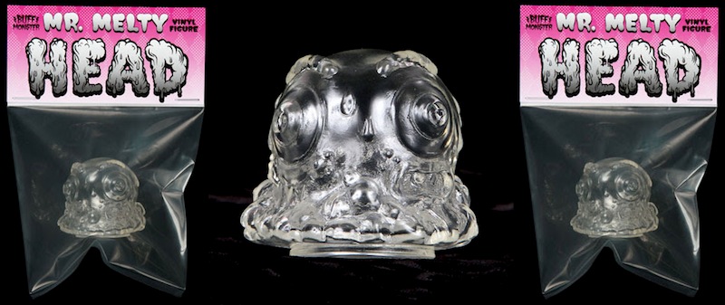 Buff Monster is proud to reveal that he’ll be dropping a new “Slime” Mr Melty colorway in his store at 10am EST today! Available with either the standard or zombified head sculpts, the 3″ tall 2-part figures have been produced in a slime green soft vinyl this time around, coming with pink/yellow free sprays, masked detailing and a thick coat of gloss. Go on sale right here for just $45 each plus shipping, as a special incentive Buff Monster will be offering up a free, all new two-faced resin head (pictured below) to anyone who picks up both designs- what more could you ask for?!