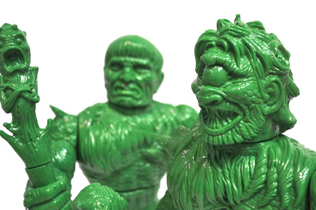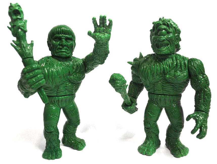 As promised in our coverage last week, we can now finally reveal release details for Skinner’s latest sofubi, Morgogg “The Whispering Prince” and Ogos “Eye of the World”! Taking on a more traditional kaiju aesthetic than both Lolgolth Gnazgoroth and the recently revealed Sextopigon, the pair blend elements of 80’s nostalgia, giant monster cinema energy, and mythology to devastating effect. Designed by Skinner with sculpting duties once again handed over to the hugely talented David Arshawsky– the original sculptor of the ’88 TMNT line and Skinner’s recent Lurker minis – both figures stand at around 13″ tall and feature 6 points of articulation, each coming complete with different head sculpts and matching club accessories. Produced in an unpainted “Gamma Ray” green soft vinyl by none other than Velocitron in Japan, the pair are due to touch down in the Critical Hit store this Friday, November 28th at Noon Pacific for $175 each or just $300 for the set.