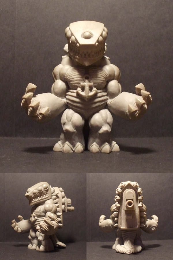 Known for his extensive work as part of The Disarticulators, the Amazing Zectron has just revealed images of his first ever solo mini figure, Tug-O-War! A labour of love that’s been nearly 2 years in the making, the over-sized, 2.5″ tall keshi blends elements from right across kaiju and classic sci-fi, featuring, amongst other design flourishes, an ingenious back-mounted tug boat so that the nautical beast can travel the seas unnoticed – until it’s time to attack that is!