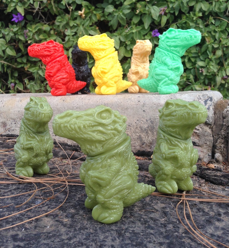 Having made brief appearances at both NYCC and Designer Con over the past couple of months, James Groman‘s follow-up to Rotten Rexx, the Rancid Raptor, has finally made his debut online! Designed and sculpted by Groman and produced by Grody Shogun, the 3.5″ sofubi mini has been cast in an unpainted “Army Green” soft vinyl for the release, alongside a few rare chase figures in red, yellow, tan, mint and black. Limited to just 2 per customer, the Rancid Raptors can be found in the Lulubell Toys store right here for just $35 each plus shipping…