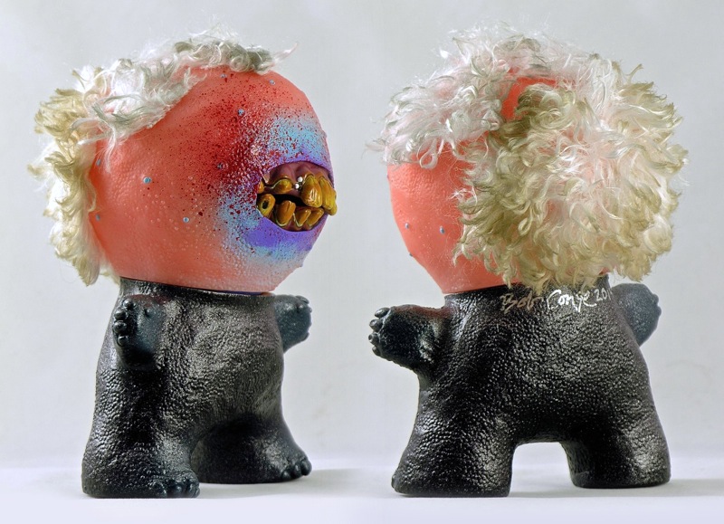 Artist Bob Conge aka Plaseebo has just revealed the first in a series of Night Gamer customs inspired by Clive Barker’s cult Hell Raiser movies! Taking on one of the series most gruesome Cenobites, the Chatterer, this one-of-a-kind piece has been produced in a mix of “peach” flesh and “leather” black soft vinyl this time around, coming with a mop of mangey white hair, rotten inset teeth and an internal motion activated color-changing LED unit with replaceable batteries. Signed and dated by the artist, “It” will be going on sale in the Plaseebo store next Monday, December 22nd for $550 plus shipping…