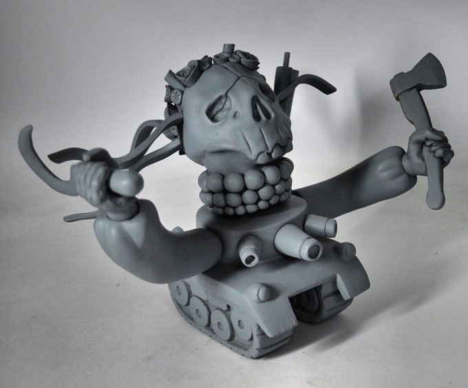 In light of current affairs over in Ukraine, native artist Patient No.6 has responded with his latest politically driven piece, Pray for Ukraine (Toy of War). Symbolising the spirit of the Ukrainian, the thought provoking figure features a mass of different design elements, including a rose-wreathed skull, axe and sickle weaponry and a turreted tank base. Standing at around 7″ tall and coming with an impressive 10 points of articulation, the hand cast, blank grey resin figure can be found in the Patient No.6 store for $86 shipped worldwide, with $10 of every sale being donated to the Ukrainian army…