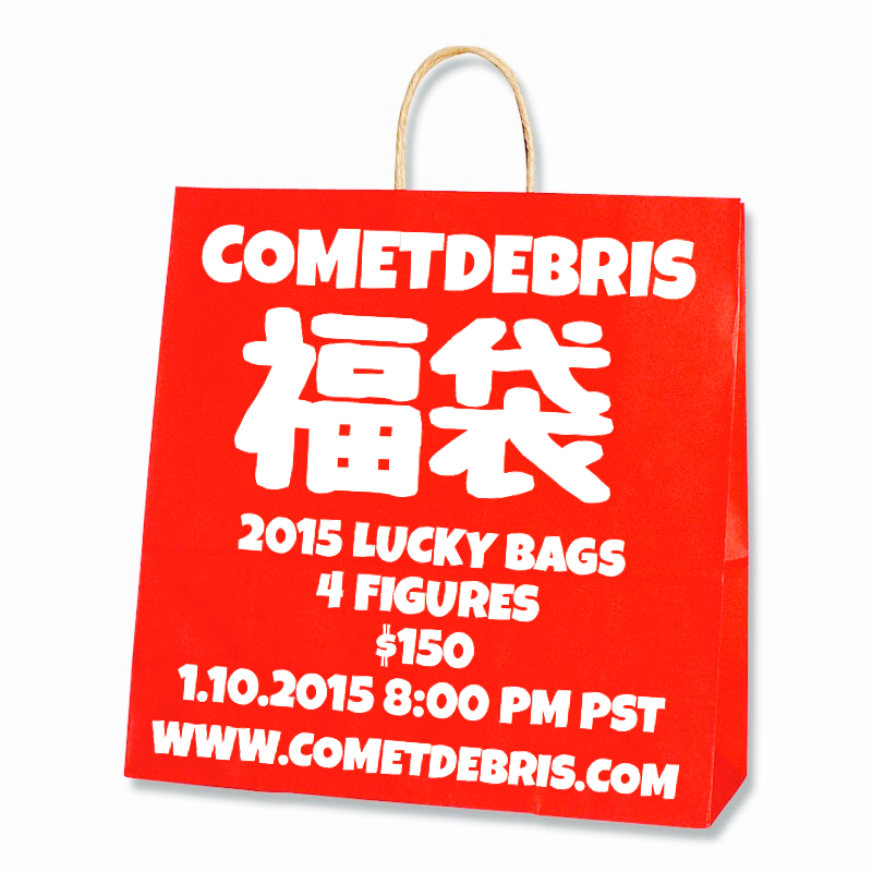 Comet Debris have revealed that they will be unleashing their 2015 Lucky Bags online next week! This year each single bag is set to be randomly packed with a whopping total of 4 different figures across the Comet Debris range (Tokoji Seijin, Sametan, Ace Robo and Kappa Shonen, Kappa Kid and Electric Boy) including test colours, one of a kind test paints, mini edition runs and custom painted figures made especially for the bags. Going on sale in the Comet Debris store next Saturday, January 10th at 8pm Pacific, the Lucky Bags can be yours for the bargain price of just $150 plus shipping…