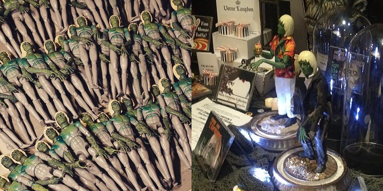 After over a year on the drawing board, the official Verne Langdon 1972 Zombie action figure will finally be available to purchase soon! Based on the late, great monster maker’s iconic Zombie mask and tiki mug, the 1/12th scale figures feature a standard articulated doll body, complete with custom sculpted, cast and painted resin heads and arms from none other than Kreature Kid. Limited to an edition of just 72 figures split into 2 fully clothed editions; a standard zombie with a torn black suit and a tiki variant, sporting white trousers, Hawaiian shirt and tiki mug accessory; the pair will be up for grabs through the Verne Langdon store in the near future for an undisclosed sum. Keep track of the dedicated World of Verne Langdon Instagram page here for full details on the release soon…