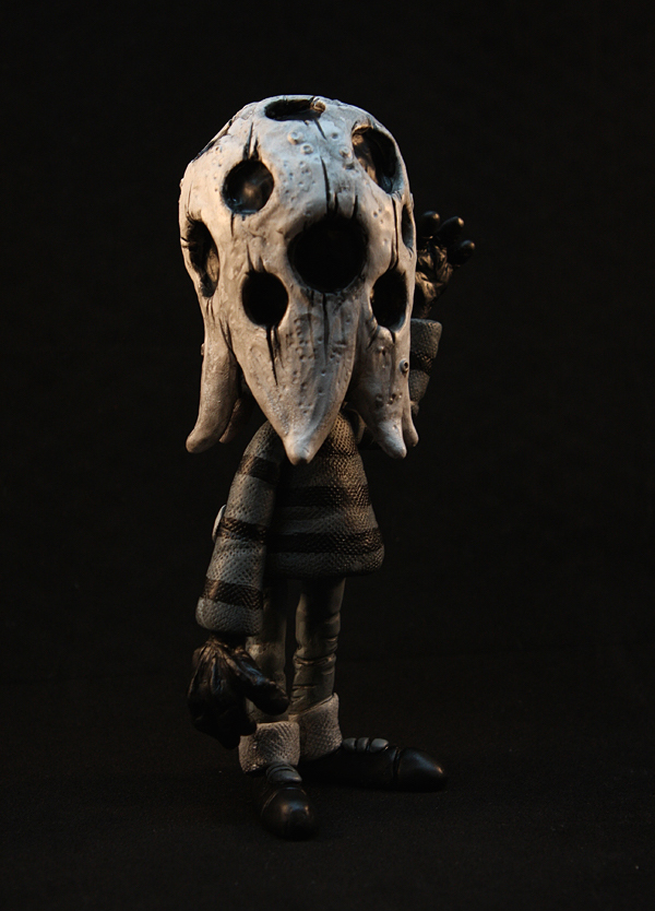 Artist Rich Page has been hard at work on the latest addition to the ever growing UME Toys family, introducing the creepy-yet-cute Millard Buckston! Standing at a lofty 7″ tall, the figure has been hand sculpted by Rich using Super Sculpey, coming painted in a monotone palette of block acrylics and washes. Unfortunately just a one-off at present, we’ll be keeping our fingers crossed for a limited resin run at some point in the near future…