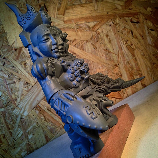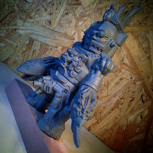 Whilst we unfortunately missed posting details of the first overseas sale of Mirock‘s “OG-AT” and “Kurama” set over the weekend (check them here), we can go a little way to making up for it today with a full reveal of the first mid-large sized figure in the Dr Mirock series! Teased here last week, the jaw-dropping figure takes a number of elements from the previous releases, featuring a number of originally sculpted and kit-bashed parts to form the absolutely stunning mecha-diety that you see here. With soft vinyl production still a little way into the future, you can guarantee as soon as we hear of any developments, you guys will be the first in the know…