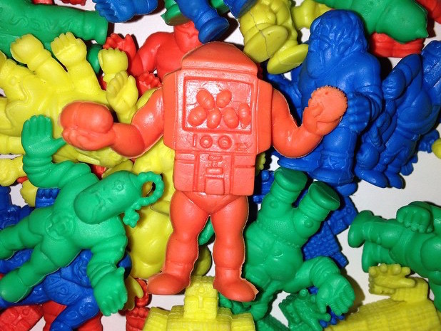 Tyler of Nama Niku fame is proud to present his latest – and possibly greatest – custom keshi, the jaw-dropping Gacha Head! Inspired by the infamous Gacha Gacha Man figure from the 1980’s “Name on the Back” knock-off Kinnikuman line, the awesome piece has been meticulously kit-bashed and re-sculpted from a selection of vintage keshi by Tyler. Ingeniously double cast by none other than Eric Nilla in a mix of flesh and “slime” green rubber complete with gacha display card affixed on the front, this initial colorway will be making it’s debut at Clutter‘s InAction Figure 3 Show next month. Stay tuned for news on the general release soon!
