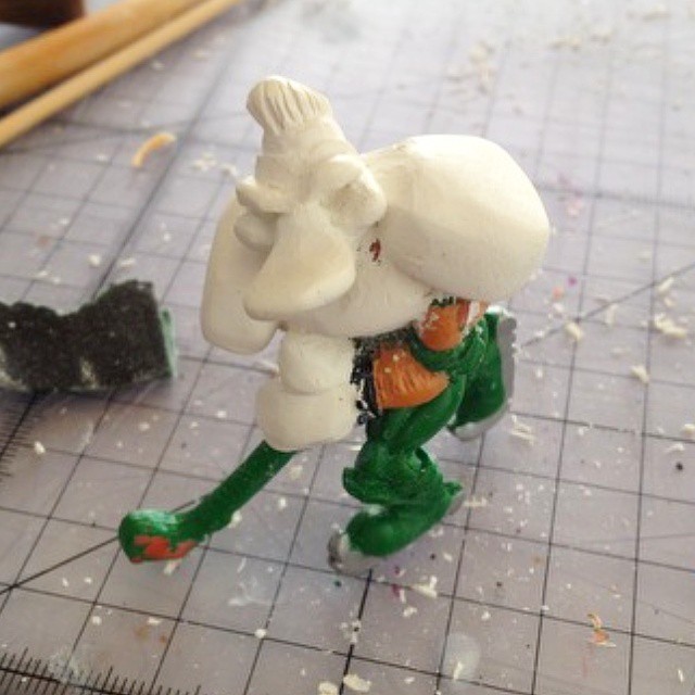 With just a couple of weeks to go until the third instalment of Clutter Magazine‘s InAction Figure Show, the guys over at Triclops have been putting the final touches on their contribution ahead of it’s silicone bath, taking on Disney’s classic Mighty Ducks cartoon for their latest B.A.S.T.A.R.Ds creation! Kit-bashed and intensively re-sculpted using a selection of vintage mini figures, the 2.5″ reinterpretation of the show’s leading puck pugilist Wildwing Flashblade is set to come cast in a multitude of monochrome colorways for its debut at the show on Saturday, February 14th. Stay tuned for a full reveal of the little guy soon!