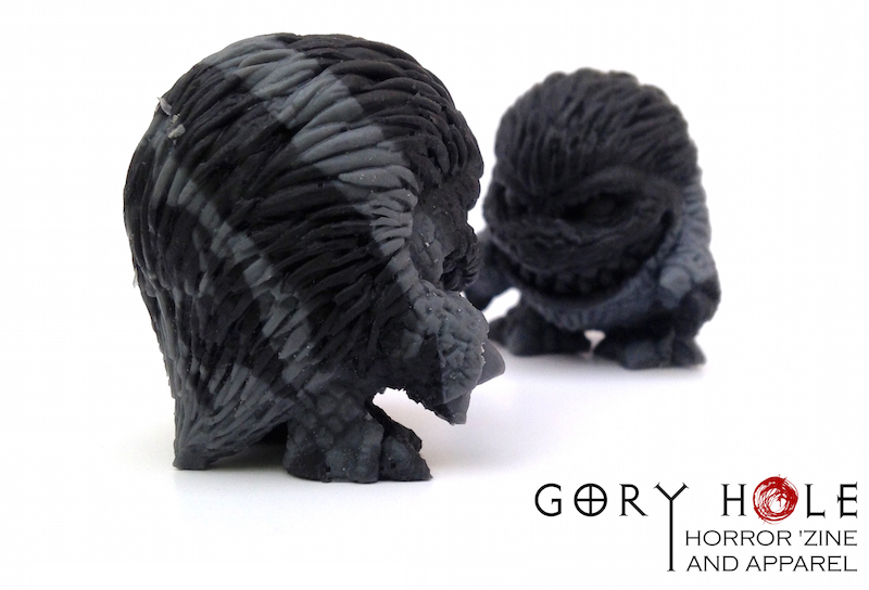 Since the “Marble Madness” Lucky Bag drop last week, we’ve had a number of enquiries as to whether the “Critters Inspired” mini figure will ever receive another “single” release… Well fear not, as the little guy will be making his next standalone appearance as part of a Gory Hole exclusive very soon! Designed and sculpted by Zectron with production duties handed over to our very own Tru:Tek, these black/grey marbled “Shocker” Crites will be dropping alongside the very first issue of the long-awaited Gory Hole ‘zine at the end of the month. Pricing and edition size are still to be confirmed at present, but it’s likely that the little guys will be bundled with a copy of the publication for around $25 each… Stay tuned for more information in the coming weeks!