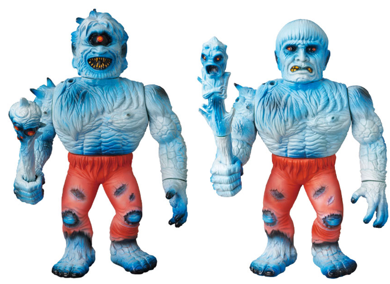 Hot on the heals of last week’s micro-run release, Skinner‘s awesome “Morgogg” and “Ogos” sofubi return once more for an exclusive drop through Medicom Toy! Designed by Skinner with sculpting duties taken care of by the hugely talented David Arshawsky– the original sculptor of the ’88 TMNT line and Skinner’s recent Lurker minis – the pair stand at around 13″ tall and feature 6 points of articulation, each coming complete with different head sculpts and matching club accessories. Produced in what appears to be a white soft vinyl for this run, the duo have been treated to a contrasting icy blue and red paint app coutesy of Monsters Stock Farm. Currently available to Japanese customers in the Medicom Toy store right here for just 22,680yen ($191) each, overseas collectors interested in picking up the pair are going to have to try their luck through the dedicated lotteries here and here…