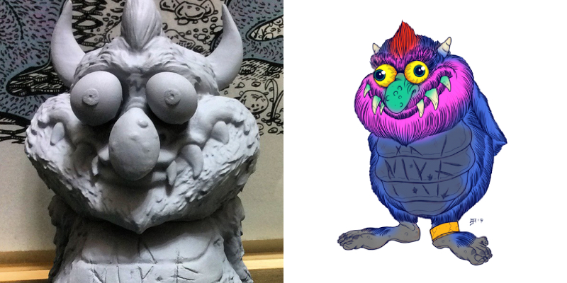 Paul Bas over at NYC’s MonsterIsland is proud to reveal the first in a series of resin figures he’ll be unleashing throughout the year based on the seminal work of Ed Roth… the jaw-dropping My Pet Fink! An ingenious mash-up of Roth’s Rat Fink and iconic 80’s plush toy-cum-Saturday morning cartoon star My Pet Monster, the impressive 8″ tall piece was co-designed alongside Gnosis’ Grizlli Atom and digitally sculpted by iamscumbag, with full-scale resin production due courtesy of MonsterIsland soon. Stay tuned for more news on the figure – and his upcoming band of companions – as soon as we get it…