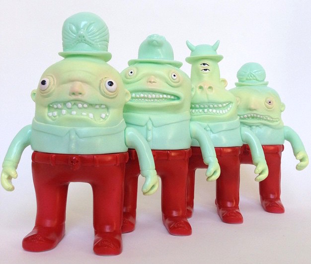 Joining the previously posted “Brice” (check him out here), the San Francisco-based duo behind Double Parlour have begun to reveal the extensive selection of other figures they’ll have up for grabs as part of their huge sale later this week! Featuring all-new limited runs of some of their most popular resin figures – the Kiddos, Giggles, Catrinettes and Scott Tolleson collab, the masked Weishaupts – these have been joined by the latest painted run of Merryners sofubi. Produced by Toy Art Gallery in a light mint soft vinyl, the quartet – Fen, Uwie, Chap and Kip – have been treated to a mix of subtle light green, flesh and red sprays. Due to touch down in the Double Parlour store this Friday, April 24th at Noon Pacific time, interested parties can find out a little more about what will be on offer by heading over to the DP Instagram feed right here…