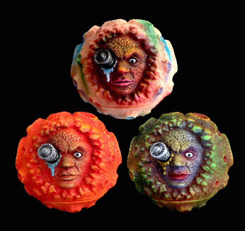 Jon Malmstedt over at Rampage Toys has been working his magic on yet more of The Disarticulators’ Oozeball sofubi, proudly presenting a trifecta of ToyCon UK exclusive custom one-offs! Produced in a non-squishy flesh-toned vinyl this time around – sadly sans squeaker – the Tru:Tek-designed, Zectron-sculpted balls have been treated to layers of sprays and brushwork, with the rather aptly titled (from left to right) “Red Planet”, “Funfetti Ooze” and “Golden Sludge” all having their own very distinct look and feel. Due to touch down alongside a whole host of other ooze-related surprises during Tru:Tek’s stint at the Toy Shack booth this Saturday, April 25th, the trio of Rampage customs will set you back just £65 ($100) each… Look out for more ToyCon reveals from our editor in chief later this week!