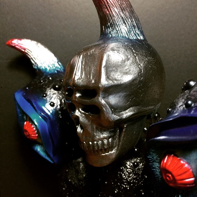 First seen as finished clay prototype back in January, the debut sofubi from TerribleWhore – the F***ing Four Fingers – will finally be making its debut at Superfestival 68 this weekend! Heavily inspired by the iconic Sneagator Claw kinkeshi/M.U.S.C.L.E mini figure, the upscaled piece features near identical textures to the original, as well as a couple of interesting new design revisions; “mouth” palm and “eye” fingers that resemble a face, and a haunting 4-eyed skull that replaces the Sneagator’s head on the index finger. Whilst a full reveal is still to come, it would appear that FFF will be debuting in a black vinyl with silver, metallic blue and red sprays. Touching down at the Mitari/Tonite Superfestival 68 booth (#c-26) this Sunday, April 26th for an undisclosed sum, a limited number of the figure have been held back for international sales, so be sure to stay tuned for release details, plus a full reveal, soon…
