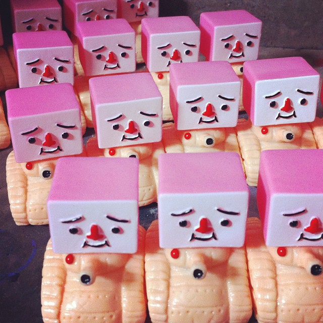 Originally teased in prototype form way back in February (check it here), the Tofu sofubi micro from Devil Robots and Rampage Toys has finally seen the light of day in vinyl- well, half of it anyway! Featuring the classic Tofu cube head, the first round of figures come complete with Rampage’s Gachapon Goblin Tank as a base whilst the original body awaits completion. Due to be making an appearance at Devil Robots’ Superfestival 68 booth this Sunday, April 26th, pricing and edition size is still to be confirmed… Here’s hoping for a general release in the Rampage store soon!