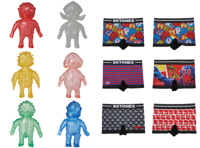 Originally debuting way back in September of last year, Medicom Toy‘s Cosmos Alien Series is set to return as part of an unlikely – yet mind bendingly awesome – collaboration with Japanese underwear brand, BETONE! Featuring Cosmos’ original 1970’s Octopus (Ooze-It) and Fish gacha minis, the pair are joined by 4 new sculpts from Mirock Toy’s Kaneko Yowohei; the Squid, Sea Urchin, Blob Fish and Sea Horse. Produced in a variety of super-squishy glitter infused clear vinyl, the gang are due to come randomly packed in with the purchase of a pair of Cosmos Alien themed underpants. With a total of 5 different designs up for grabs at just 3,900yen ($33) each, be sure to look out for these ridiculously cool pant/toy sets when they hit BETONE retailers in late August…