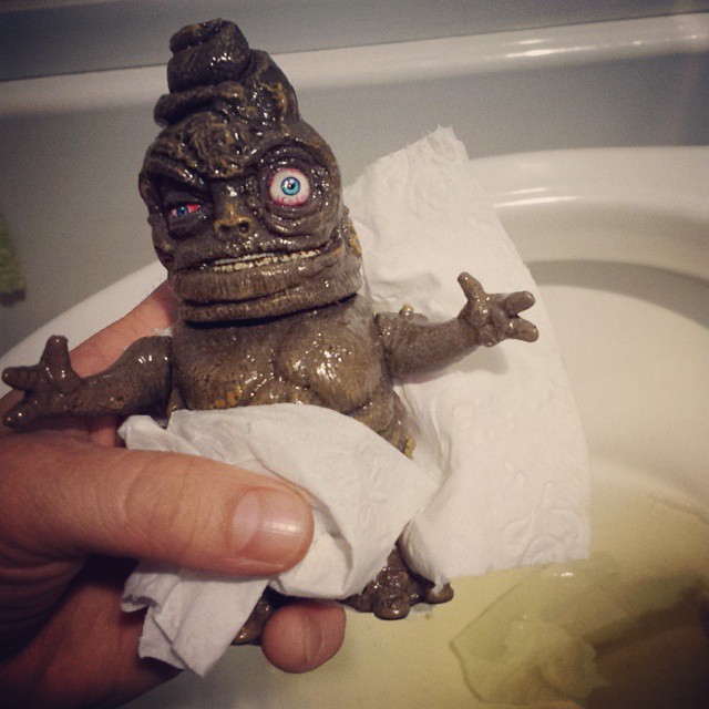 Artist Joe Whiteford has just revealed that his highly popular Buddy Dung character is set to return as a fully-fledged figure! Featuring a similar face to the original mini released last year (check them out here), the grotesque pile of poo has received a new fly-infested, y-front wearing body, all hand sculpted, cast in resin and painted in acrylics by Joe. Due to be making an appearance in the artist’s store at some point in the near future, be sure to stay tuned for the full lowdown on the adult-sized Buddy Dung soon…