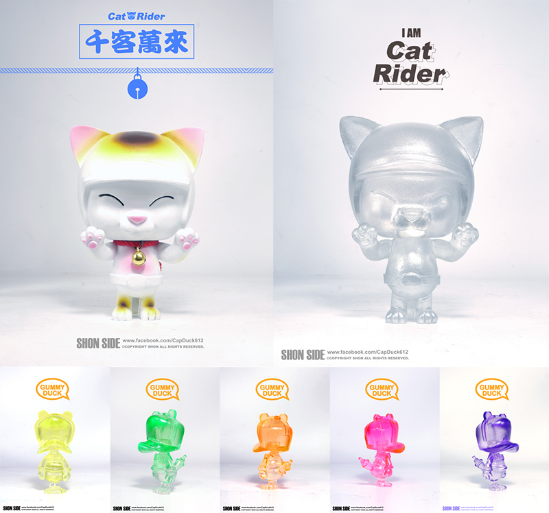 Taiwan-based resin artist Shon Side is proud to reveal that he’ll be attending Design Fiesta 41 this weekend with a whole heap of new goodies in-tow! Marking the return of his signature Cap Duck figure in a sleek “Steel Space” colorway, the stunning piece will be joined by 2 versions of the Cat Rider – “Lucky Cat Rider” and “I am Catrider” – as well as Gummy Duck a selection of 5 all-new translucent colorways. Up for grabs at Design Fiesta booth K-447 this Saturday, May 16th, a limited amount of each have been held back for a simultaneous drop on the Shon Side online store. Touching down at 9am Hong Kong time, the figures have been priced between $30-$110 each plus shipping…