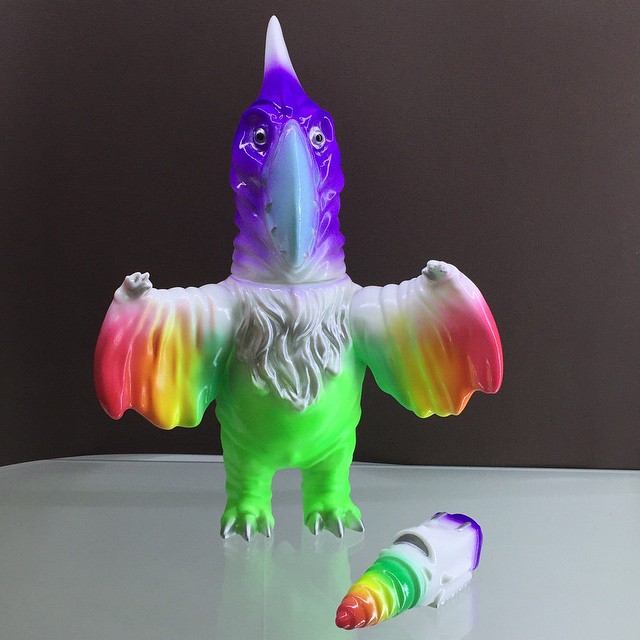 Having already had the honor of releasing exclusive runs of both Monoclon and Tyranbo, Angel Abby are proud to reveal that they’ve taken on yet another figure from Cojica Toys’ line of dino sofubi, the winged Soprano! Produced in a white soft vinyl this time around, the mid-sized figure has been treated to a rainbow of faded sprays courtesy of Angel Abby’s Andy, coming complete with a matching drill accessory that can be fitted to the figure with hidden magnets. Up for grabs at Angel Abby’s Hong Kong-based store tomorrow, a limited supply have been held back for an online release this Saturday, May 16th at 12am Hong Kong time…