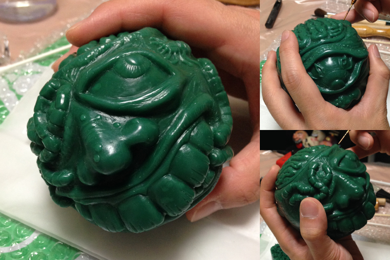 Up and coming toy company Bad Attic are proud to reveal that they’ll be releasing a number of trading cards, mini figures and sofubi throughout 2015, kick things off with the awesome Madballs-inspired Two Face Todd! The first to feature in Bad Attic’s ongoing Trouballz line, the figure comes in at an authentically scaled 3″ wide, featuring a – you guessed it – two faced, gross-out design with a rather clever cranium cap joint. Currently undergoing the final stages of wax prototyping courtesy of Bad Attic’s Masa-shi, Two Face Todd is set for soft vinyl production in the very near future. Keep an eye on the newly created Bad Attic blog for more details soon!