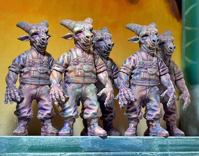 Fresh from our look at the “Grey Version” Wilburs and Jiangshis just yesterday, Singapore-based artist Daniel Yu reveals yet more figures that’ll be up for grabs in his online store later this week! Once again taking on the meaty goat-faced Wilbur, the 3.5″ tall figure has been cast up in resin for 2 painted micro-runs; “Unicorn Barf” (top) and “Terracotta Warriors”; both coming in a slew of detail hugging washes and brush work. Limited to just 5 in each colorway, Wilbur will be joining the previously posted figures – plus a few soon to be revealed – in the Daniel Yu store this Friday, June 12th… Look out for more info tomorrow!