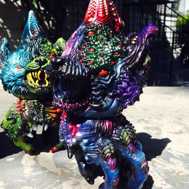 After months on the drawing board, the jaw-dropping “Canine Lupis” resin figure from MM Toys is finally making its debut this week! The fourth figure in the team’s horror infused series of teeth monsters, the huge werewolf-like beast has been hand sculpted by Maren Seibold and roto-cast by husband Mark “HipHopRobot” Bentley, standing at an impressive 10″ tall and weighing in at just under a pound of black tinted resin. Available in a number of hand sprayed colorways for just $85 plus shipping (take a look at what’s on offer right here), anyone interested in bagging the figure is going to need to hit Mark up at hiphoprobottattoos@gmail.com with their enquiries… Looking for a blank version to paint up yourself? Then you’ll be glad to know that these are also currently available for a slightly reduced price- contact the guys at the above address for details!