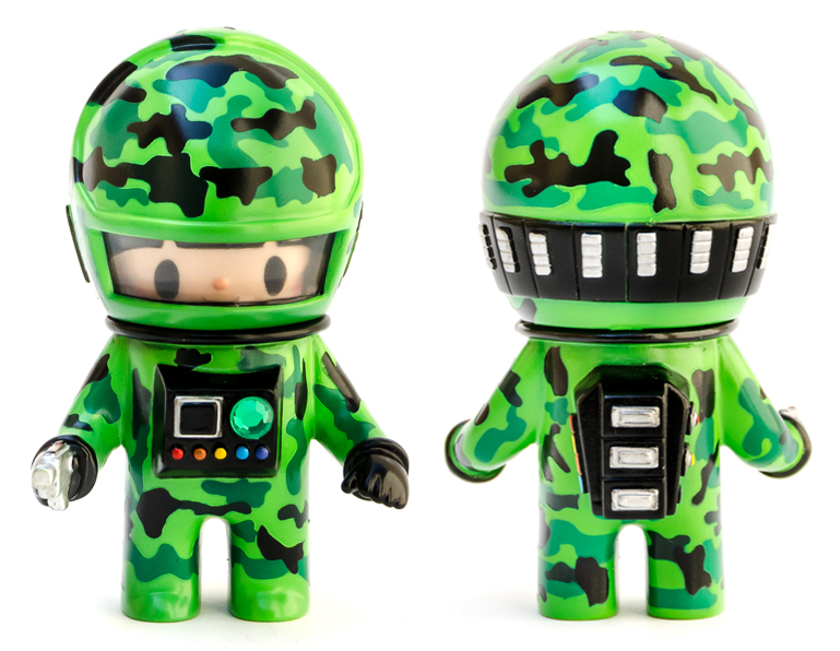 Fresh from our reveal of Vinyl Pulse‘s 10th Anniversary exclusive “Astronaut” sofubi earlier in the week, we can now reveal that the industry-leading toy blog has teamed up with Itokin Park‘s Kazu-san for yet another celebratory release, the “Camo” Space Mode Man! Standing at around 3.5″ tall, the beautifully realised figure has once again be produced in VP’s signature neon green and black, this time around coming with a meticulous hand painted camo pattern- marking the first time ever that this technique has been applied to an Itokin release. Touching down alongside the Astronaut on the VP site right here this coming Friday, June 19th at 7.30am Pacific time, the “Camo” Space Mode Man has been priced at just $45 plus shipping…