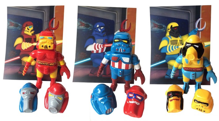 The guys over at DKE Toys have once again secured a ton of exclusives for SDCC next month, the first to be revealed coming in the form of these awesome “Dester Commando” figures from Star Case! Taken from ongoing knock-off Star Wars line “Star Convoy”, the 6″ tall Stormtrooper-inspired sofubi has been treated to 3 hand painted colorways for the release, drawing inspiration from Marvel’s Iron Man, Wolverine and Captain America. Coming packed with 2 additional heads plus a matching print card, each colorway has been limited to just 25 figures priced at $85 each. Available at DKE’s SDCC booth (#5045) alongside a whole host of other goodies starting Wednesday, July 8th, be sure to stay tuned for more reveals very soon…