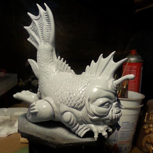 Paul Kaiju has just unveiled a finished clay prototype for a beast that we reckon’ll prove more than a match for Atlantean-terror King Jinx, the jaw-dropping Biter Fish! Whilst little is known about the figure at present, it would appear that the mini-mid sized figure has been inspired by vintage “tub toys” (toys that can be played in the bath), sculpted by Paul to float and hopefully coming in a squishy vinyl complete with squeaker once production finally rolls out. Keep a close eye on the Paul Kaiju Instagram feed here for more news on this interesting project soon…