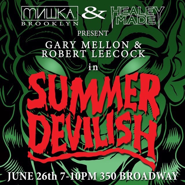 Healeymade has teamed up with artists Gary Mellon and Robert Leecock for an all-new resin bust that’ll be dropping at the pair’s “Summer Devilish” show at Mishka‘s NYC-based store tonight (6/26)! Sculpted by Mellon based on an illustration by Leecock, the 9″ tall devil boy has been cast by Healey in a solid resin, coming in a selection of black, metallic purple and red finishes. Going on sale at the event from 7pm-10pm for an undisclosed sum, a commemorative t-shirt featuring Leecock’s original illustration (pictured above) will be up for grabs too…