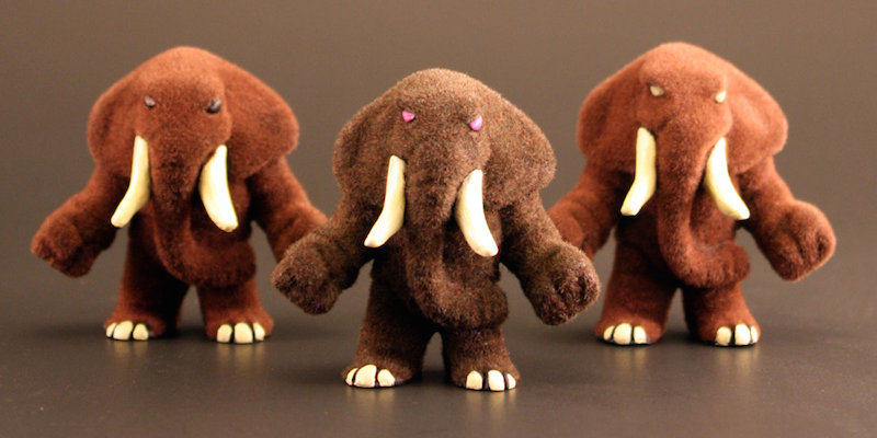 Following months on the drawing board, Daniel Smith aka Turbopistola is proud to present his latest wave of Elephantos resin figures, the flocked “Wooly Mammoth” and “Albino Mammoth” editions! Cast in resin by Daniel and intricately flocked by Spy Monkey Creations’ Jeremy Sung, the 2.5″ tall figures are available in a choice of 2 colorways; brown, coming in 2 different tones with a variety of different eye colors and “Albino” white, complete with white and pink detailing. Limited to just 14 and 6 figures respectively – each coming bagged with a hand made header and 1″ button – the flocked “Mammoth” Elephantos editions will be touching down in the Turbopistola store today (6/28) at 9.30pm Eastern time for just $36 each plus shipping…