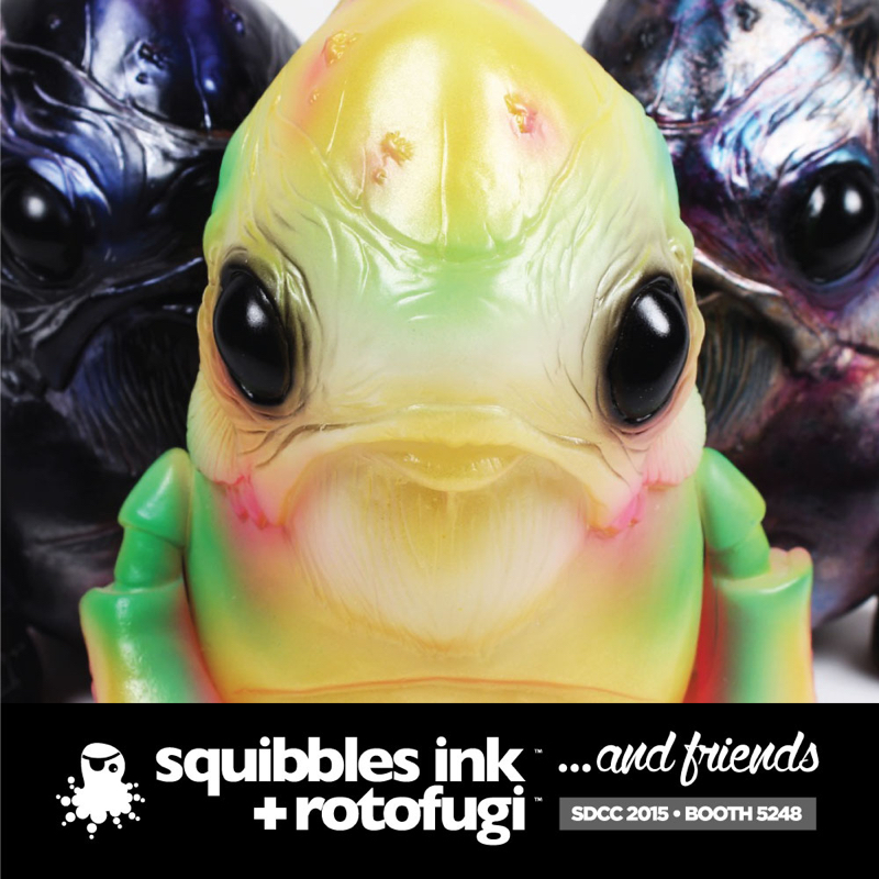Hot on the heals of our reveal of the SDCC ’15 exclusive Snybora last week, the guys over at Rotofugi have teamed up with Squibbles Ink and Chris Ryniak for another “Lake Monsters” con release… a special trifecta of one-off “Big Muscamoot” figures! Designed/sculpted by Ryniak and produced in a soft vinyl courtesy of Squibbles Ink, the trio have each been uniquely painted by the combined talents of Rotofugi’s Kirby Kerr and Joe Summers. Priced at just $150 each, the custom Big Muscamoots will be available alongside a whole host of other exclusives at the Rotofugi booth (#5248) starting Preview Night on Wednesday, July 8th… Look out for another Rotofugi SDCC ’15 reveal tomorrow!