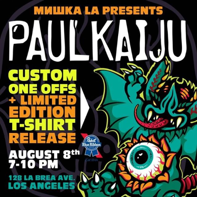 Paul Kaiju has just revealed that he’ll be taking over apparel brand Mishka‘s LA-based store next weekend for a special t-shirt and toy release! Featuring the Devilman-inspired Mockbat shirt design you see above, the must have garm is set to be joined by a whole slew of one-off custom sofubi from Paul’s extensive line-up of figures. Opening its doors at 7pm next Saturday, August 8th at the La Brea Avenue location, be sure to keep a close eye on PK’s Instagram feed here for figure reveals from the impromptu show over the next few days…
