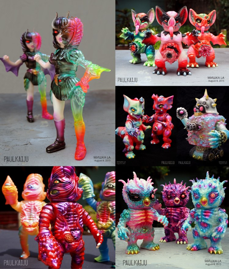 As promised in our announcement last week, we can now bring you guys a full reveal of the plethora of custom figures Paul Kaiju will have up for grabs at his impromptu Mishka LA show this weekend! Featuring a whole slew of beautifully painted Boss Carions, Kraken DX, Sally Joes, Mock Pilots, Mock Bats and a Gobo King, these will also be joined by a special “Devilman” Mockbat t-shirt that will be up for grabs exclusively at the event. Opening its doors at the LA-based location this coming Saturday, August 8th at 7pm, anyone interested in bagging one of the customs are going to need to turn up an hour before (6pm) to collect a designated purchasing wristband… Here’s hoping some of the shirts make it to the Mishka online store soon after!