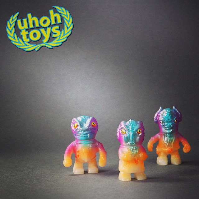 Aaron Arel over at UhOh Toys has just revaled that his “Errants” sofubi minis will be returning this week in a special “New Sunset” colorway! Consisting of all 3 2.5″ tall designs from the series; “Roku” the scientist owl, “Cutty” the cowboy bull and “Verge” the space faring lizard, the adorable 2 part figures have been produced in a milky soft vinyl this time around, coming complete with mesmerising blue, purple, orange and silver sprays. Priced at just $35 per set plus shipping, the “New Sunset” Errants will be up for grabs in the UhOh Toys store via limited preorder later on today (8/4)…