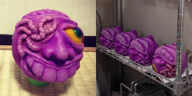 Fresh back from a recent toy hunting trip over in the UK, Japanese artist Masa-san of Bad Attic Toys is proud to reveal that his long-awaited “Two Face Todd” Trouballz sofubi will be making it’s debut soon! The first to feature in the ongoing Madball-inspired “Trouballz” line, the gruesome ball comes in at an authentically scaled 3″ wide, featuring a two faced, gross-out design complete with a rather clever cranium cap joint. Produced in a thick light purple soft vinyl that mimics the knock-off rubber Madballs of the late 1980’s, the first run is currently being treated to a bootleg-style paint app ahead of their release later this month. Having had the honor of meeting Masa and seeing the balls in-person earlier this month, we can assure any fans of classic gross-out balls that they are most definitely not going to want to miss out on these… With that in mind, be sure to look out for the full, exclusive lowdown on the release right here over the coming weeks!