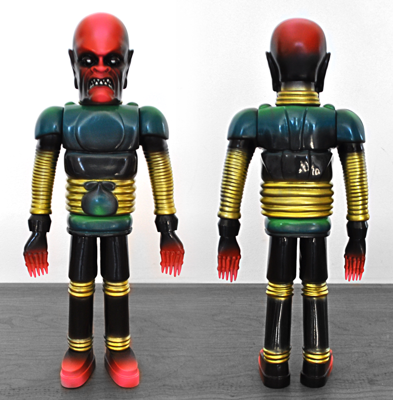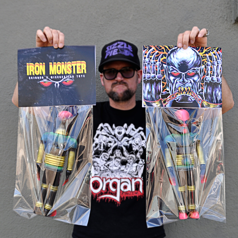 Legendary artist Skinner has just revealed that he’s the latest to take on Miscreation Toys‘ awesome “Iron Monster” sofubi, proudly presenting the “Vintage Robo” micro-run! Inspired by Dr Zorka’s robot in the 1939 scifi/ horror B-movie serial “The Phantom Creeps”, the towering 15″ figure was designed by Rimel, digitally sculpted by iamscumbag and produced in Japan courtesy of Grody Shogun. Cast in what appears to be a black soft vinyl this time around, the limited batch of just 6 figures have each been treated to a plethora of vintage-style sprays and rubs courtesy of Skinner. Coming bagged with a giant size header card, Skinner’s Iron Monsters will be touching down in the Critical Hit store this Friday, August 14th at Noon Pacific time, coming in at $250 each plus shipping…