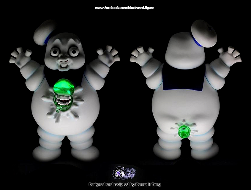 Originally teased in our coverage of Joe Whiteford’s custom a couple of weeks back (check it here), we can now finally reveal Blackseed‘s “Marshmallow Uncle” sofubi in-full! Designed and digitally sculpted by Blackseed’s Kenneth Tang and produced by Angel Abby, the stunning figure has been heavily inspired by Ghostbusters’ Stay Puft Marshmallow Man, featuring a similar “bubble” design that features a number of additional resin cast parts, including a Alien-esque chest busting parasite, eyes, teeth and sailor hat… Making it’s debut as part of a group exhibition at Angel Abby’s Hong Kong-based store soon, the figure is due to touch down in 3 different colorways; the pictured “OG” white, unpainted clear and GID, coming in at just $700HK ($90) each. Look out for more details on both the figure and event over the coming weeks…