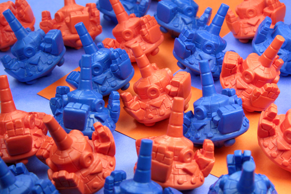 Having already seen two sell-out drops this year, the “Robo Top” resin spinning top from Inami Toyland‘s Kevin Nam returns by popular demand for a special “Nightfall” release! Coming in at around 2″ tall by 2″ wide, the fully working, hand sculpted spinning top features an ingenious “rock, paper, scissors” style mechanic, with each of the robot’s hands (clenched, 2 fingers up and 3 fingers up) representing the game’s 3 choices. Produced by Kevin in 2 different sunset-inspired colorways for this release, an unpainted “Warm Orange” and “Cool Blue”, both have once again been limited to an edition of just 10 pieces each. Coming poly-bagged with an admission ticket-style header card, the latest round of Robo Tops will be touching down in the new Inami Toyland store, on Thursday, September 3rd at 9pm Eastern time for just $15 each plus shipping. Check out a video of the pair in action right here…