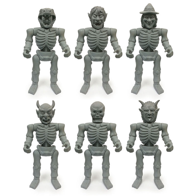 Wasting no time since the final release in their debut series “Galaxy Commanders” last week, the team behind Skullmark are proud to reveal that their next upcoming sofubi project – the “SkullWorld Warriors” – is already entering the final prototyping stages! As with the Galaxy Commanders, the series has its foot planted firmly in the world of vintage knock off action figures, this time around drawing inspiration from the classic Underworld Warriors of the 1980’s. Featuring a similar, albeit slightly chunkier body to the original 5.5″ figures, the upscaled series is set to include all 6 heads – Krampus, Cobraman, the Devil, Skull, Goblin and Witch – from the original line. Due to go on sale via preorder in the Toy Underground store next week, we’re told that all 6 designs will be available as a complete set from the off. Stay tuned for a full reveal in vinyl, plus those all important release details, over the next few days…