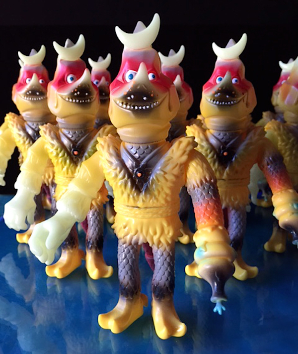 Bwana Spoons over at Gravy Toys is proud to reveal that the latest Suns of Brodarr figure, “Paulo”, will be making his debut in a special “Shitstorm” colorway later on today! Designed by Bwana and sculpted by Beth Graves, the full articulated sofubi stands in-scale with previous SoB releases at around 5.5″ tall. Produced in a GID soft vinyl for his first outing, Paulo has been treated to a variety of brown, orange and red sprays with white and blue brushed detailing. Going on sale in the Gravy Toys store right here at 10am Pacific today (9/11), the little guy will set you back around $60 plus shipping…
