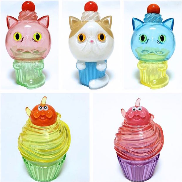 The guys over at Lulubell Toys are proud to reveal that they’ve secured a limited supply of Refreshment Toys‘ latest sofubi, the Exotic Short Hair Cupcat and all-new Cherry Cupcake! Featuring a total of 5 different differebt varieties; “yellow/green” and “red/purple” Cupcakes alongside “clear”, “blue/yellow” and “red/green” Cupcats, each 4″ tall figure has been cast in crystal clear vinyl with a variety of c-thru sprays, hand brushed detailing and internal paint. Priced at just $22 for the Cupcakes and $25 for the Cupcats, all 5 buying options can be found in the Lulubell Toys store here whilst in-transit supplies last…