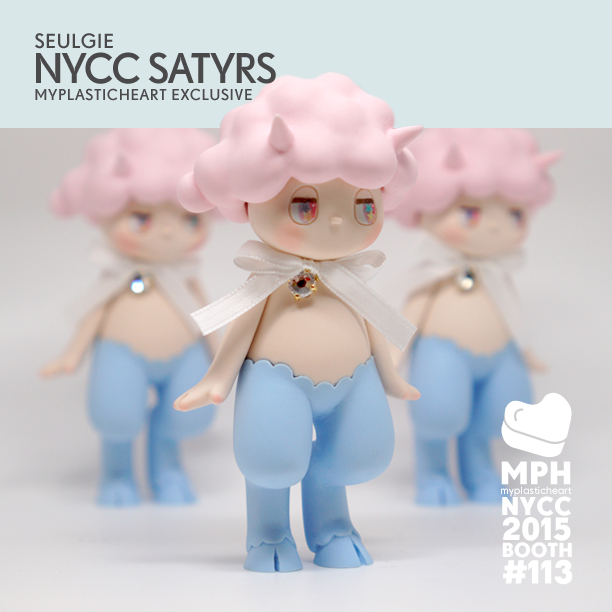 Brooklyn based artist Seulgie is proud to announce that she will be releasing an exclusive version of her popular “Satyr” resin at New York Comic Con next month! Marking the third release of the super-cute figure, this limited run has been hand cast, painted and embellished by the artist in a pastel pink and blue colorway, each coming complete with a ribbon and Swarovski crystal accessory created specifically for the event. Touching down at the myplasticheart NYCC booth (#113) as from Thursday, October 8th, pricing and edition size for the figure are still to be confirmed…