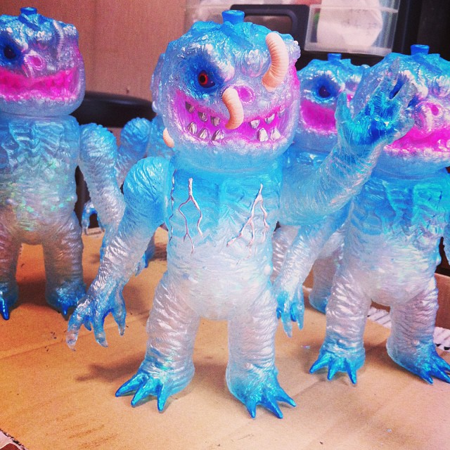 Joining the previously posted “Hag DX”, Rampage Toys has revealed that he’ll be unleashing a special “Rotten Ice X” micro-run in his online store tomorrow! Featuring the Triclops designed/Zectron sculpted “Rotten Tomato” ball as a head, the b-movie “X” body figure has been jointly produced by Rampage Toys and Skull Head Butt, standing at around 9″ tall and coming with 5 points of articulation. Produced in a crystal clear vinyl this time around, Rotten X has been treated to a number of icy blue, silver and pink sprays with silver and flesh-tone detailing. Limited to an edition of just 5 pieces, the Rotten Ice X’s will be touching down alongside the Hag DX right here at 10am Japan time tomorrow (10/1). Pricing is still to be confirmed…