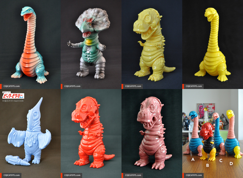 The guys over at Cojica Toys have just unleashed a whole slew of new dino sofubi online! Featuring an all-new run of Neclong in gorgeous metallic blue and orange sprays over flesh vinyl for 6,000yen ($50) and a “Monochrome Emissions” Monoclon in green vinyl with silver, black, yellow and red sprays for 4,300yen ($36), these fully painted editions are joined by blank “Tyranbos” in yellow, red and smoke red, a “Soprano” in light blue and a “Neclong” in yellow – all priced at 5,000yen ($42) – as well as a run of one-off mixed part Tyranbos and Neclongs for the special price of just 3,000yen ($25). Currently up for grabs via lottery sales through the Cojica site, interested parties are going to need to fill in the dedicated entry form here for a chance at picking up any of the figures listed above…