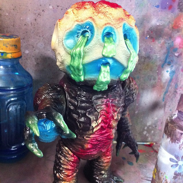 Jon Malmstedt over at Rampage Toys has just unveiled one of many limited runs he’ll have on display at Clutter Magazine‘s upcoming “Nihonsei” (Made in Japan) group show, proudly presenting the “Ooze-X” mash-up! Once again taking on Skull Head Butt’s classic “X” body, the 9″ tall figure features The Disarticulators‘ Oozeball as a head, coming complete with layer upon layer of metallic and neon sprays, fades and brushwork. Limited to just a handful of pieces, pricing on this never-to-be-repeated mash-up is still to be confirmed… Look out for the full lowdown on the show, including dates, featured artists and purchasing instructions soon!