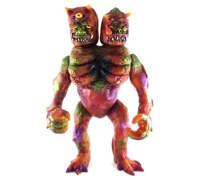 Wasting no time since Arturo Ulloa’s drop just last week, Kearjun is proud to reveal that OP Customs is the latest artist to take on the mighty Goodon for a special micro-run release! Heavily inspired by Bemon’s iconic “2-Headed” kaiju, which in turn was inspired by Famous Monsters of Filmland’s 1968 “Jack the Giant Killer” cover, the towering 2-faced figure has been designed and sculpted by Kearjun, standing at around 10″ tall and featuring 6 points of articulation. Once again produced in a tan colored vinyl, the lumbering beast has been treated to OP’s signature metallic Monster Kolor sprays and brushed detailing in purple, green, orange and black. Due to go on sale in the OP Customs store today (10/29) at 10am Pacific time, the limited run of just 5 figures are likely to set you back around $225 each plus shipping…